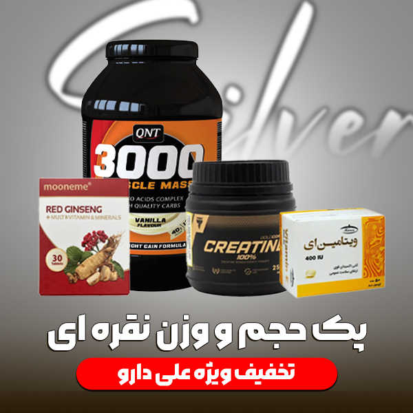 پک مکمل بدنسازی حجم و وزن نقره ای مخصوص ورزشکارانی که به دنبال حجم و وزن با قیمت اقتصادی و شگفت انگیز می باشد.