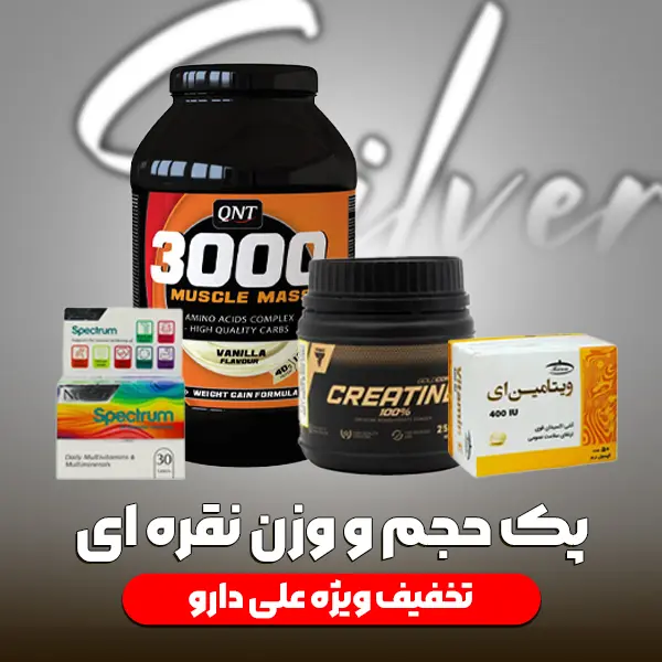 پک مکمل بدنسازی حجم و وزن نقره ای مخصوص ورزشکارانی که به دنبال حجم و وزن با قیمت اقتصادی و شگفت انگیز می باشد.